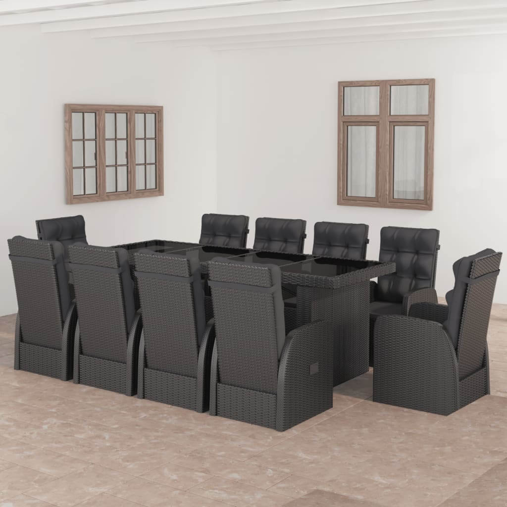 - 11-delige Tuinset met kussens poly rattan zwart, keuze uit zwart of houtkleurig tafelblad