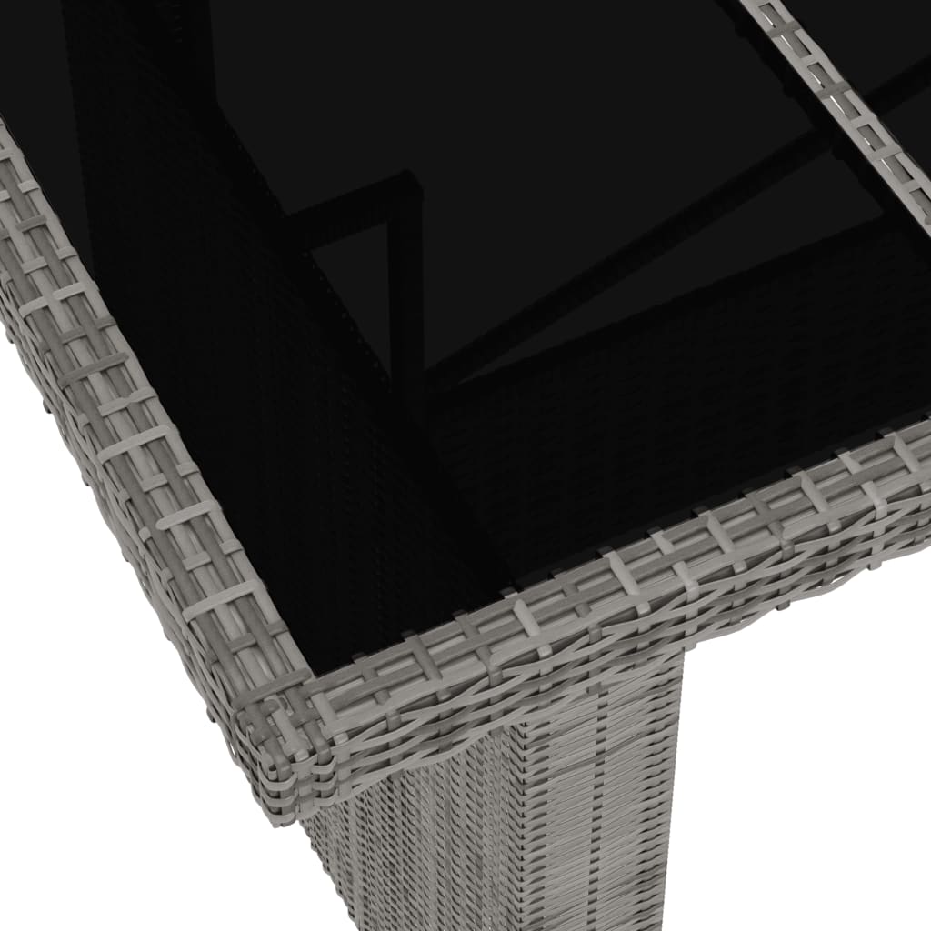 Deze tuinmeubel set heeft een stevig gepoedercoat stalen frame, dat zeer stabiel en duurzaam is. Dankzij de PE-rattan is de eethoek eenvoudig te reinigen, slijtvast en geschikt voor dagelijks buitengebruik. Het glazen tafelblad is eenvoudig te reinigen met een vochtige doek. De verstelbare stoelen bieden optimaal zitcomfort en geweldige ondersteuning. De rugleuning kan eenvoudig versteld worden met behulp van de knop aan de zijkant. De stoelen met voetensteunen bieden extra comfort.